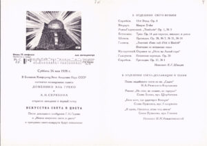 Программка Первого вечера искусства света и цвета